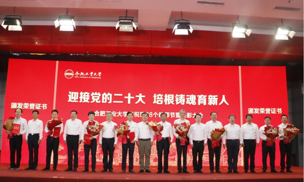 9月10日下午,為慶祝第38個教師節,學校圍繞“迎接黨的二十大,培根鑄魂育新人”主題,在屯溪路校區東風報告廳隆重召開教師節表彰大會。校黨委書記余其俊出席會議并講話,校長鄭磊主持會議。校黨委常委、副校長吳玉程,校黨委副書記陳剛、陳鴻海,校黨委常委、副校長劉志峰、季益洪出席會議。