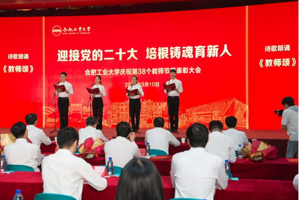 校大學生藝術團為全體教師獻上了詩歌朗誦,一首《教師頌》為老師送上誠摯的節日祝福,表達了他們對老師的感恩之情。
