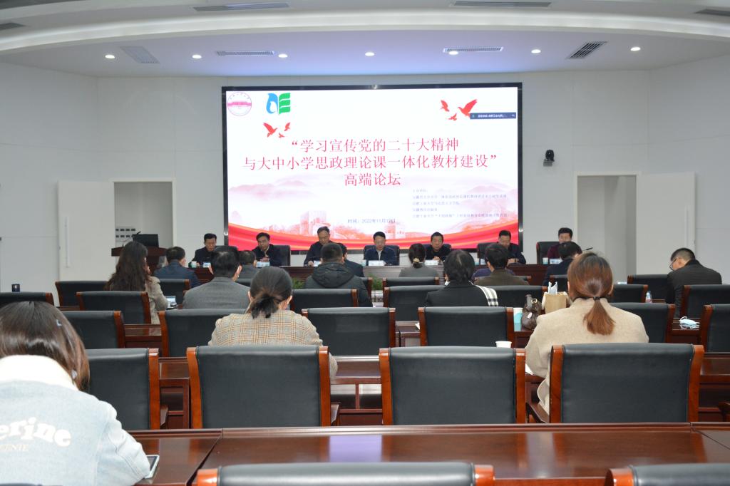 11月19日,“學習宣傳黨的二十大精神與大中小學思政理論課一體化教材建設”高端論壇在我校屯溪路校區舉行。我校校長鄭磊,安徽省委教育工委委員、省教育廳副廳長儲常連,安徽出版集團黨委委員、時代出版傳媒股份有限公司總經理鄭可出席開幕式。校黨委副書記陳鴻海主持開幕式。