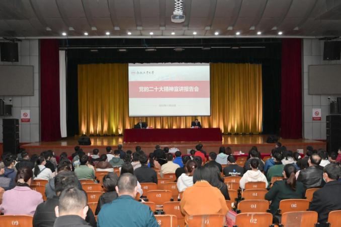 為進一步推動學習貫徹黨的二十大精神走深走實,11月23日,學校在斛兵禮堂舉行黨的二十大精神宣講報告會。黨的二十大代表、全國高校學習宣傳黨的二十大精神巡講團成員、安徽師范大學路丙輝教授應邀作專題報告。校黨委副書記陳鴻海主持報告會。