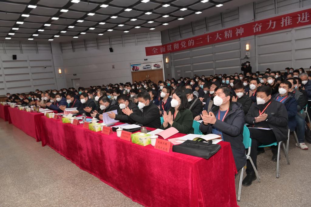 鄭磊在報告中深入分析了面對新時代新形勢新要求,學校建設發展面臨的挑戰和仍然存在的問題。他強調,學校各項成績的取得是教育部黨組、安徽省委省政府正確領導的結果,是學校黨政領導班子凝心聚力、奮力拼搏的結果,是海內外廣大校友關心關注、大力支持的結果,更是全體教職員工辛勤工作、無私奉獻的結果。新的一年里,學校將深入貫徹落實黨中央、教育部黨組及安徽省委省政府決策部署,在學校黨委的堅強領導下,堅定“工業報國”初心使命,深入實施“十四五”事業發展規劃,堅持立德樹人根本任務,繼續強化人才培養中心地位,不斷彰顯“工程基礎厚、工作作風實、創業能力強”的人才培養特色;持續推進“雙一流”建設,強化學科內涵,不斷推進學科建設水平爭先進位;持續深化有組織科研,爭取在國家級平臺和原創性成果方面有新的突破;加快推進產學研合作,構建“‘工大智谷’-合肥工業大學智能制造技術研究院-科技產業園區”新型科技企業孵化體系,持續升級政產學研用合作“合工大模式”;加強高層次人才自主培育力度,持續加強高層次人才和師資隊伍建設;強化“教授治學、專家治校”治理體系,提升學校治理能力;不斷完善學術委員會統籌行使學校學術事務決策、審議、評定和咨詢等職權;持續增強資源籌措能力和基礎保障能力,為學校進一步發展提供堅實保障。全校教職員工要在學校黨委的堅強領導下,解放思想、攻堅克難、奮發作為,加快推進國際知名的研究型高水平大學和一批世界一流學科建設,為全面建設社會主義現代化國家貢獻合肥工大更大的力量。