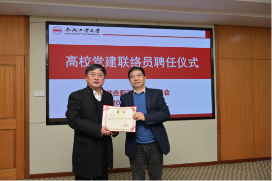 會(huì)上,余其俊受教育部黨組委托,為丁輝同志頒發(fā)了黨建工作聯(lián)絡(luò)員聘書并為閔鐵軍同志頒發(fā)紀(jì)念品。校黨委常委、組織部部長蔣傳東匯報(bào)了學(xué)校黨建工作,黨政辦主任、黨委宣傳部常務(wù)副部長嚴(yán)福平匯報(bào)了學(xué)校安全穩(wěn)定和意識形態(tài)相關(guān)工作。