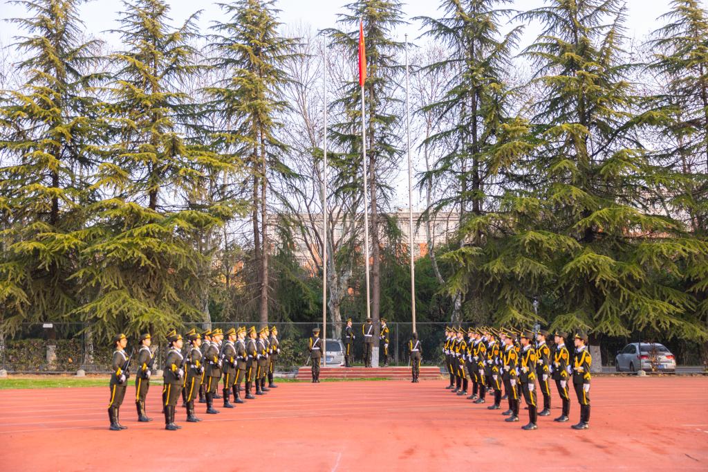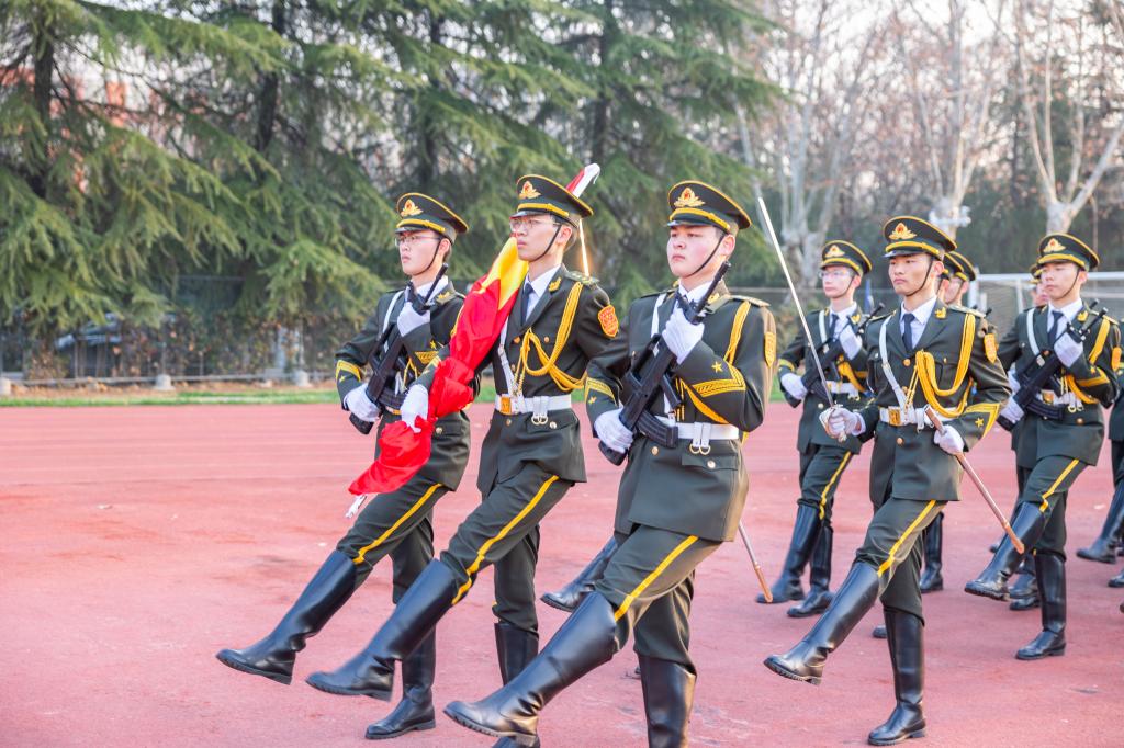 伴隨著激昂的樂曲,國旗護衛隊昂首挺胸,邁著鏗鏘的步伐,護送國旗至升旗臺前。全體師生激情澎湃,注視著五星紅旗冉冉升起,在嘹亮的歌聲中共同開啟嶄新學期。