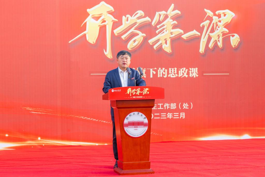 3月6日上午,春季學期“開學第一課”升旗儀式暨國旗下的思政課在我校屯溪路校區、翡翠湖校區同時舉行。校黨委書記余其俊為同學們講授國旗下的開學第一課。活動由校黨委副書記陳剛主持。