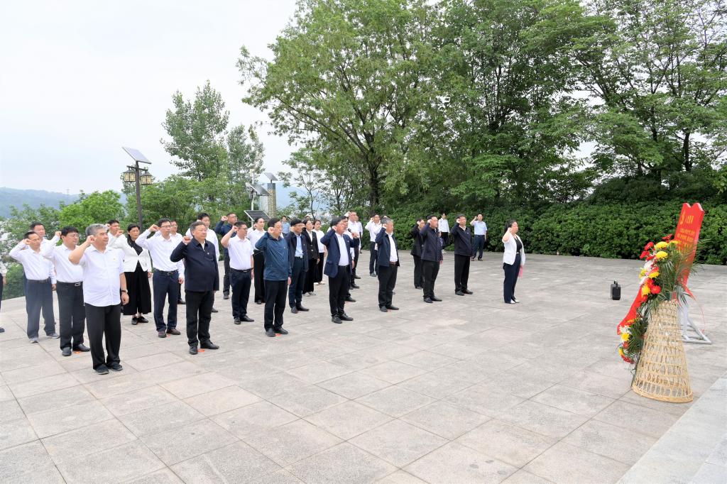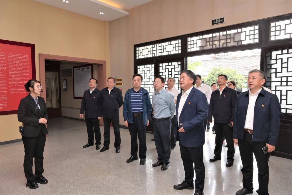 當天下午,讀書班赴六安市獨山鎮蘇維埃城開展實地研學。在六霍起義紀念館,一張張照片、一件件實物展現了獨山革命先烈的豐功偉績,再現了獨山暴動、六霍起義和蘇區春秋的壯麗畫卷。通過實地參觀紅軍街六安縣蘇維埃俱樂部、獨山暴動指揮部、六安縣保衛局等獨山革命舊址,大家了解了獨山鎮“一鎮十六將,獨秀大別山”的光榮歷史,領略了小鎮古色、紅色相映成輝的獨特魅力。隨后,讀書班成員懷著崇敬的心情來到六霍起義紀念塔前,向革命先烈敬獻花籃,肅立默哀,深切表達對革命先烈的崇高敬仰和無限懷念。面對鮮紅的黨旗,全體黨員重溫入黨誓詞,用錚錚誓言彰顯使命初心,宣示著對黨忠誠的政治信念。