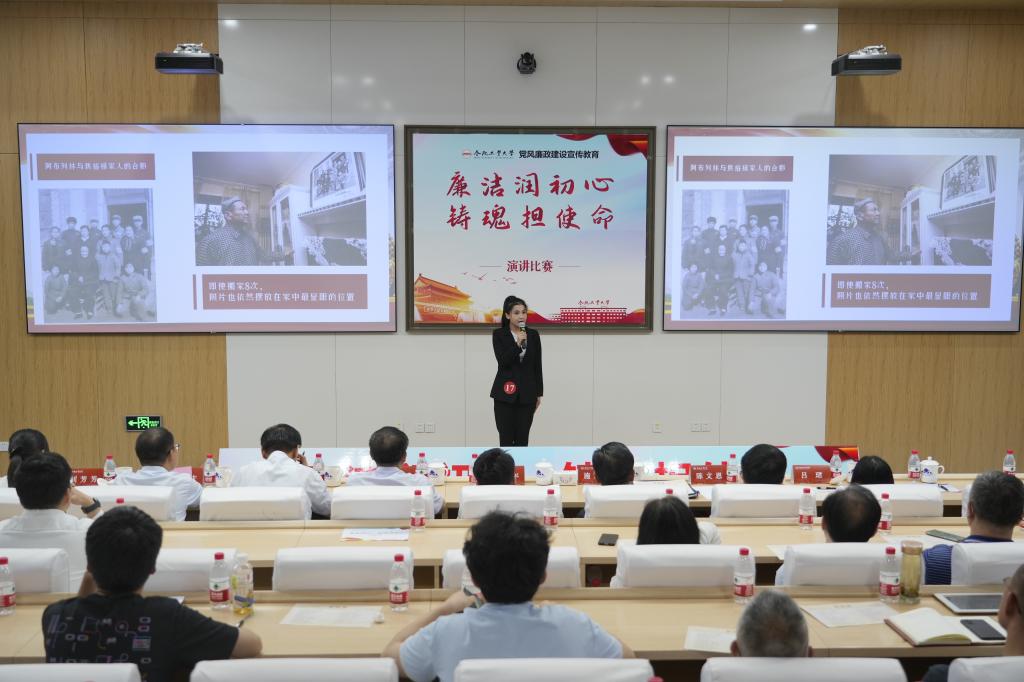 比賽中,來自學校20個單位的師生依次登臺演講,選手們精神飽滿,以真摯熱誠、慷慨昂揚的情感和姿態闡述了對全面從嚴治黨、黨風廉政建設、反腐敗斗爭以及校園廉潔文化建設的獨到見解和思考。其中,《致敬萬世師表,堅守廉潔初心》等作品結合教師崗位實際,弘揚教育家精神,表達了新時代教育工作者堅守教育初心的使命擔當;《汲取榜樣力量,爭做廉潔表率》《廉風化雨潤桃李,修身育才鑄師魂》等作品深度挖掘身邊典型,深情講述學校辦學歷程中,一件件生動感人的廉潔故事;《天山法官,澄清一片心》等作品謳歌時代楷模的先進事跡,傳遞清廉為官信念、清廉職業操守、清廉家風家訓。