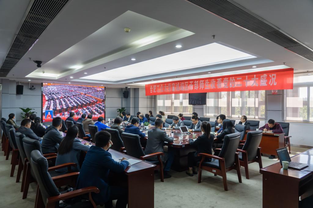 宣城校區(qū)黨委副書記、管委會常務(wù)副主任方留表示,黨的二十大是在全黨全國各族人民邁上全面建設(shè)社會主義現(xiàn)代化國家新征程、向第二個百年奮斗目標(biāo)進軍的關(guān)鍵時刻召開的一次十分重要的大會。黨的二十大報告振奮人心、催人奮進,鼓舞激勵我們向著更加壯闊的新征程踔厲奮進,贏得新的更加偉大的勝利和榮光。我們要全面貫徹黨的教育方針,落實立德樹人根本任務(wù),踔厲奮發(fā)、勇毅前行,推進宣城校區(qū)的建設(shè)和發(fā)展,辦好人民滿意的高等教育。新時代新起點,要建強基層黨組織,筑牢堅強戰(zhàn)斗堡壘,堅持用理想信念強基固本,堅定馬克思主義信仰,鞏固師生團結(jié)奮斗的共同思想基礎(chǔ),堅定不移沿著習(xí)近平總書記指引的方向深學(xué)篤行、深耕細(xì)作、賡續(xù)奮斗,教育引領(lǐng)青年學(xué)生以理想信念堅定的“擔(dān)當(dāng)者”、德才兼?zhèn)涞摹皧^斗者”、能力卓越的“開拓者”為目標(biāo),努力成長為全面發(fā)展的社會主義建設(shè)者和接班人。