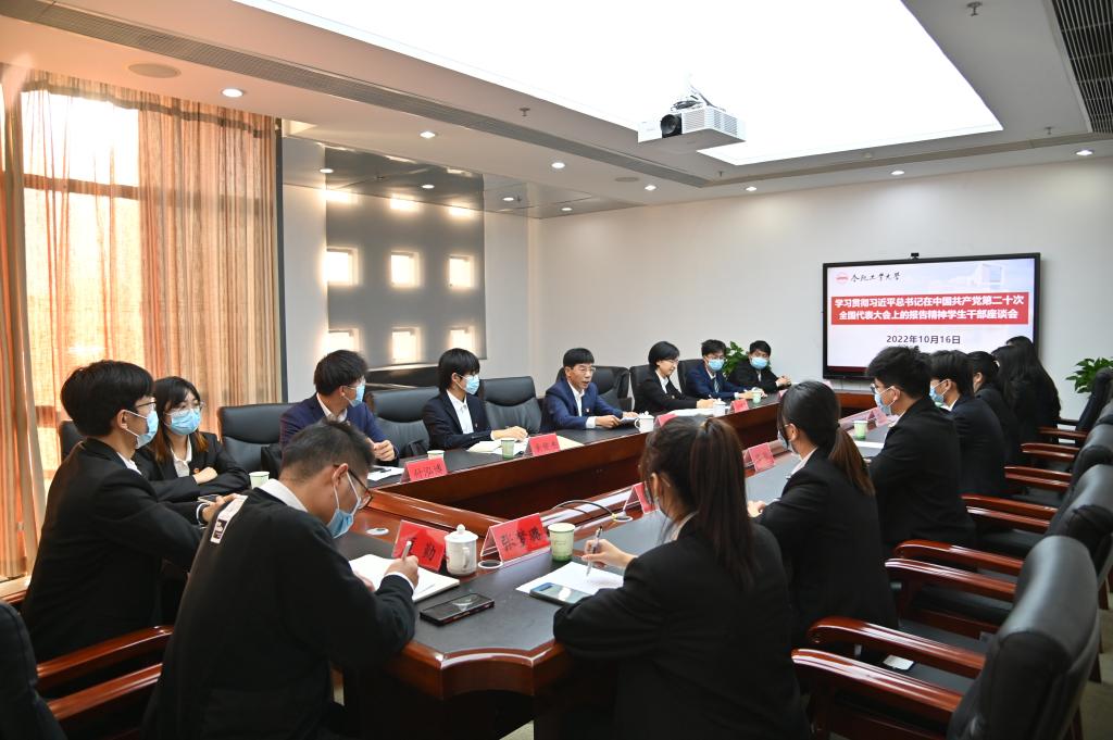 當(dāng)天下午,校區(qū)黨委召開三場學(xué)習(xí)貫徹習(xí)近平總書記在中國共產(chǎn)黨第二十次全國代表大會上的報告精神座談會,黨員干部、學(xué)生干部、師生代表結(jié)合自身實際暢談學(xué)習(xí)體會。