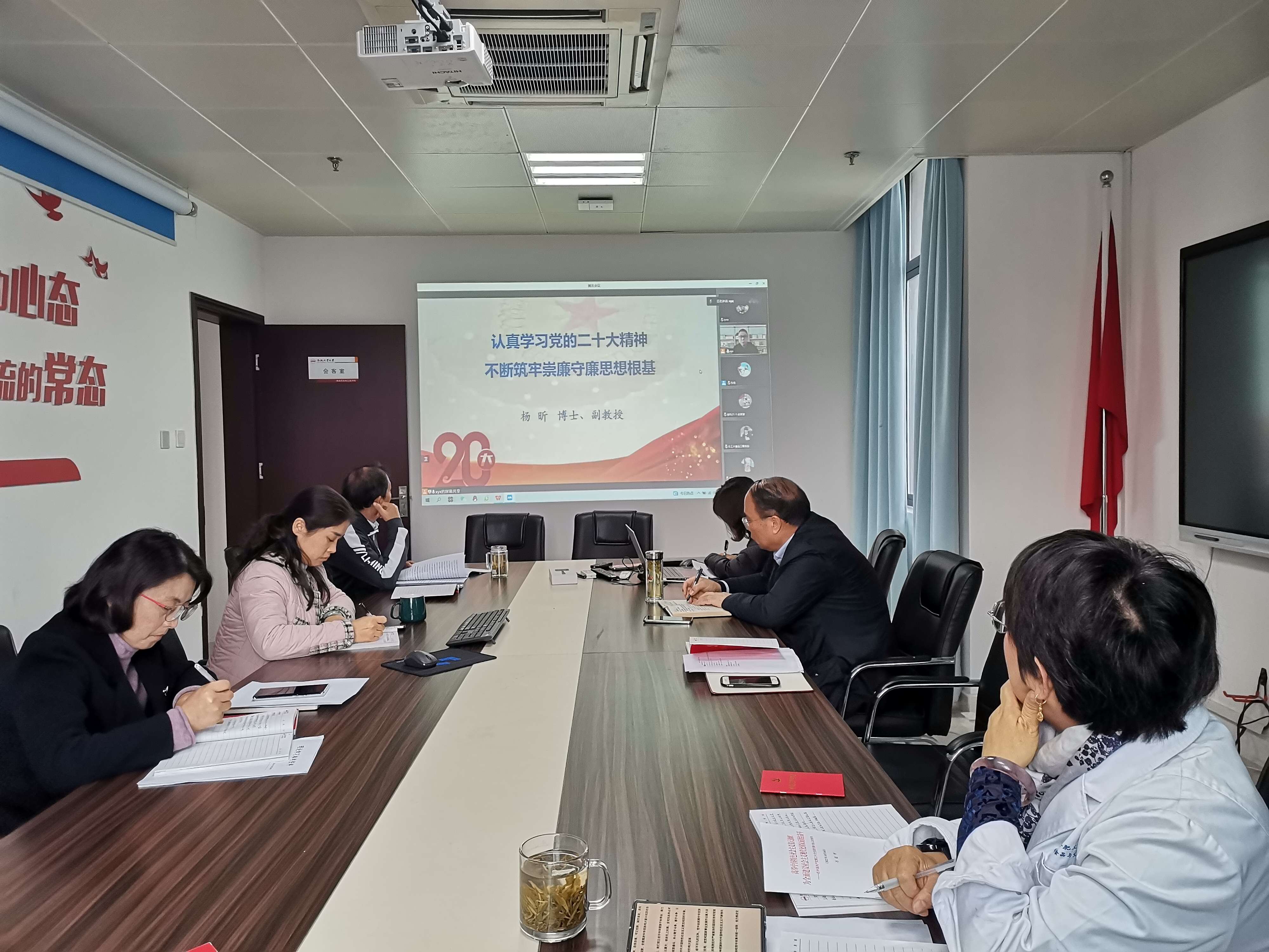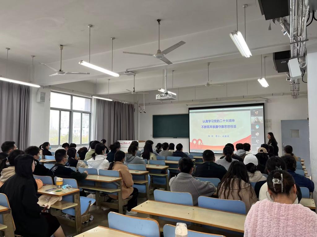 楊昕以“認真學習黨的二十大精神,不斷筑牢崇廉守廉思想根基”為題,結合學習貫徹黨的二十大精神,從黨風廉政建設的重大意義出發,以新中國反腐第一案等典型案例向黨員同志們傳遞著腐敗與黨水火不容、與人民幸福背道而馳的思想。隨后,他深刻闡述了十九大以來黨風廉政建設的成效,從八項規定開局破題、各類反腐倡廉案件,展現了共產黨堅持糾正一切損害群眾利益的腐敗和不正之風的偉大決心。最后,主講人從黨員廉潔教育管理方面,結合學術腐敗、科研造假、考試作弊、疫情防控等,引導全體師生黨員要對黨忠誠,牢記初心使命,知敬畏、存戒懼、守底線,推動崇廉守廉思想入腦入心入行。