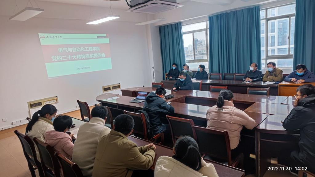 為推進學院學習宣傳貫徹黨的二十大精神持續走深走實,11月30日下午,電氣與自動化工程學院在逸夫樓召開學習宣傳貫徹黨的二十大精神宣講報告會,院黨委書記何岳頎作宣講報告,全院180余名教職工通過線上線下結合的方式參加學習。
