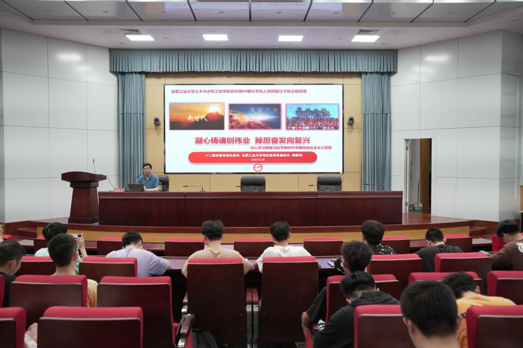 5月26日,土木與水利工程學院在屯溪路校區學術會議中心二樓報告廳開展學習貫徹習近平新時代中國特色社會主義思想主題黨課,學院黨校班主任、第69期大學生入黨積極分子班180余人參加學習。