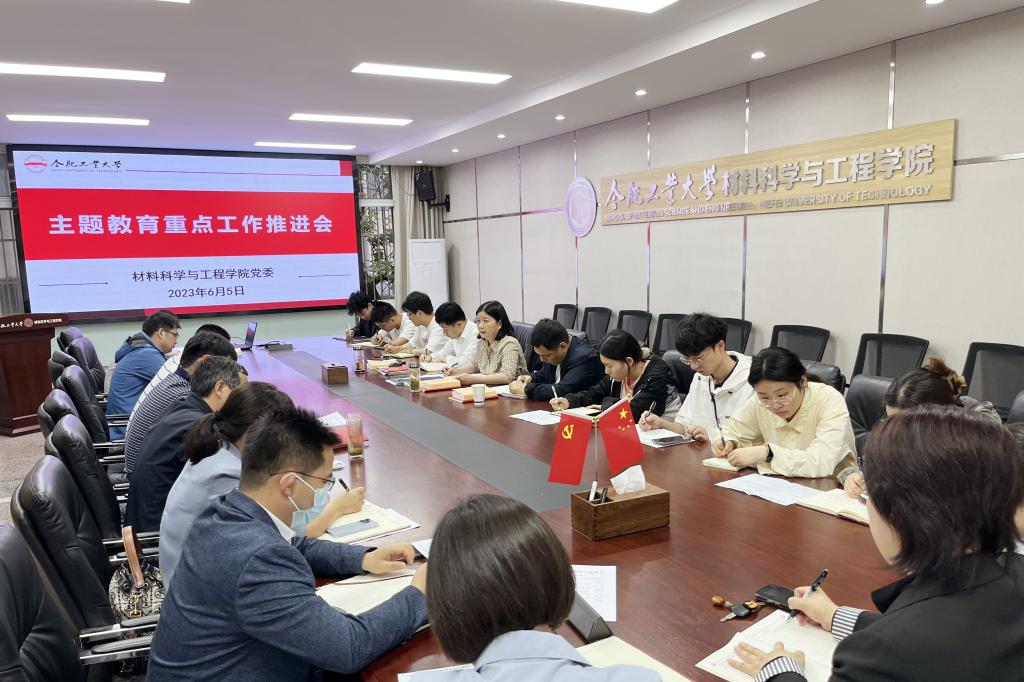 為推進學習貫徹習近平新時代中國特色社會主義思想主題教育深入開展,6月5日下午,材料科學與工程學院在屯溪路校區材料樓綜合服務中心210召開學習貫徹習近平新時代中國特色社會主義思想主題教育重點工作推進會,階段性總結學院主題教育工作開展成效,并就下一階段學院主題教育重點工作進行再部署。學院黨委書記呂珺主持會議,學院主題教育工作組全體成員參加會議。