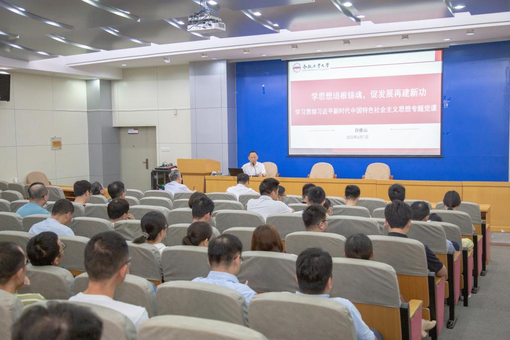 為切實推動學習貫徹習近平新時代中國特色社會主義思想主題教育再深化、再提檔,6月7日下午,汽車與交通工程學院在格物樓214報告廳召開學習貫徹習近平新時代中國特色社會主義思想主題教育專題黨課,院黨委書記白修山作“學思想培根鑄魂,促發展再建新功”專題報告。